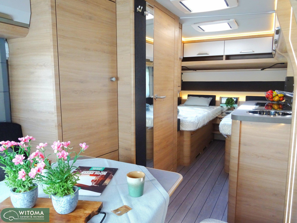 Let op! Interieurfoto's zijn van een zustercaravan met dezelfde bekleding zonder voorraam