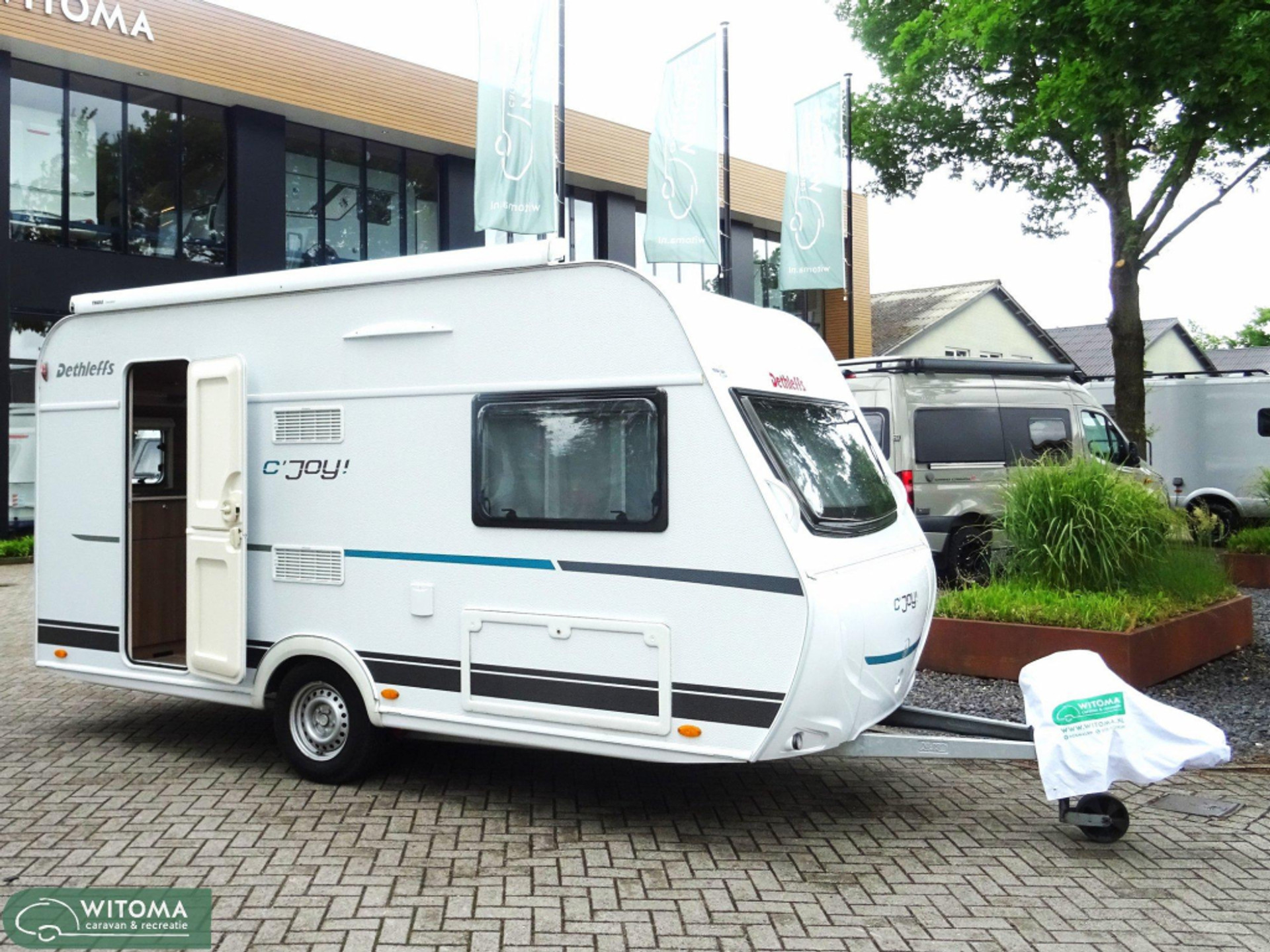 COMPACTE CARAVAN, PERFECT VOOR DE KLEINE, SMALLE WEGGETJES!De DETLEFFS C'joy is een lichtgewicht caravan met zijn breedte van 212 cm is dit de ideale caravan voor smalle en bergachtige weggetjes en voor de kleinere, lichtgewicht trekauto.