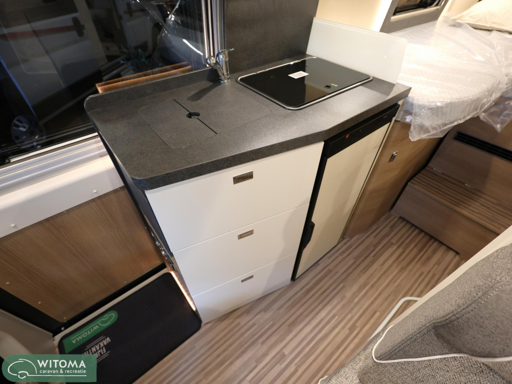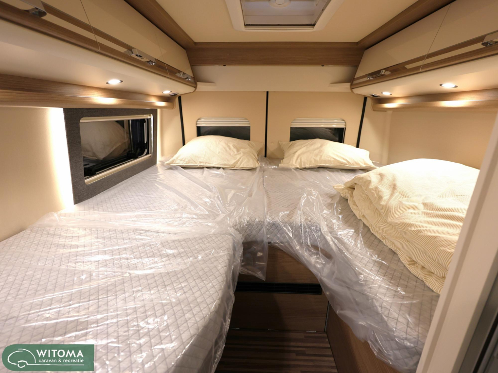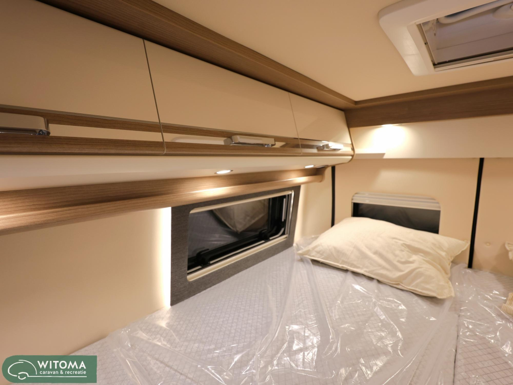 (Hemelbekleding met isolerende microvezelbekleding, Verlaagd plafond woonruimte met indirecte led-sfeerverlichting Upgrade keuken, Hoogwaardige koudschuimmatras in achterbed, Truma CP Plus digitaal bedieningspaneel Bevestigingssysteem bagageruimte, Afvalwatertank in behuizing ingebouwd en geïsoleerd)