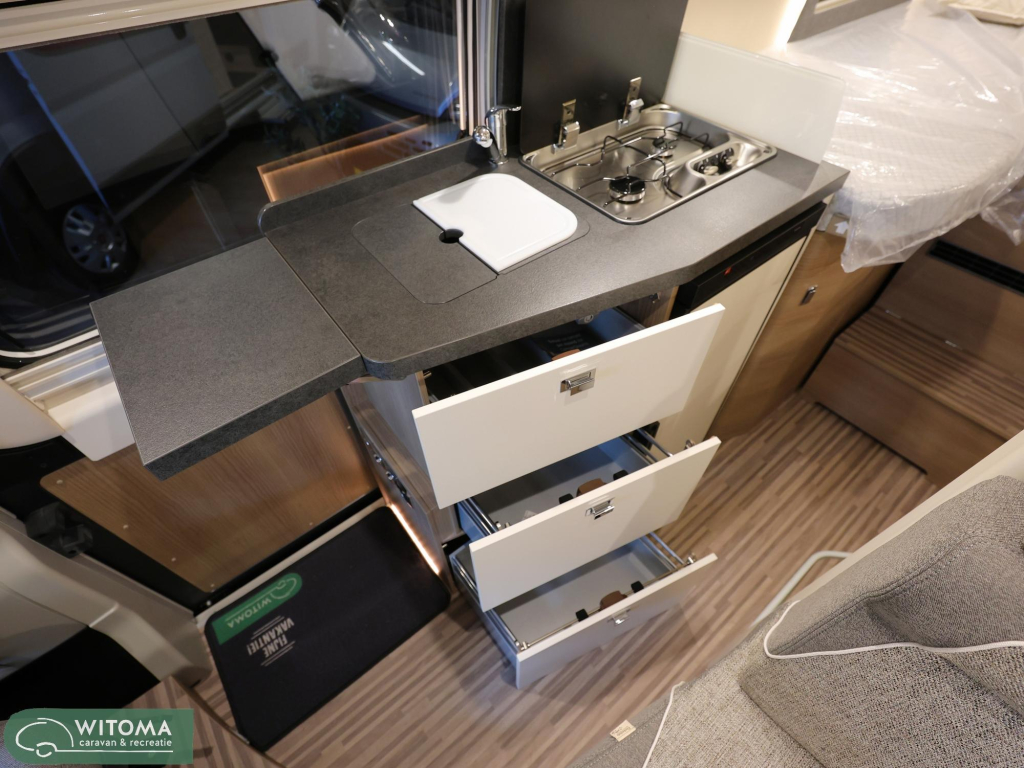 (Parkeerhulp met sensoren achterin, Brandstoftank 90 liter, Laadbooster, Vouwverduistering cabine, Koplamprand in het zwart afgewerkt, Radiovoorbereiding met dakantenne en DAB+, luidsprekers (4x), Bijrijdersstoel in hoogte verstelbaar, Pilootstoelen bekleed met woonkamerstof incl. gestoffeerde armleuningen, Hordeur, Elektr. Bed. buitenspiegels)