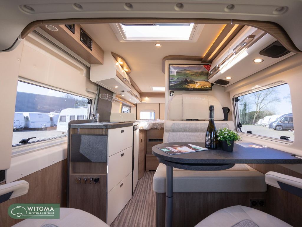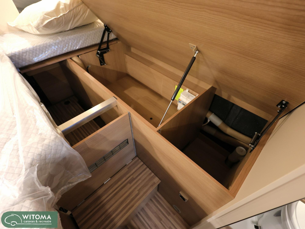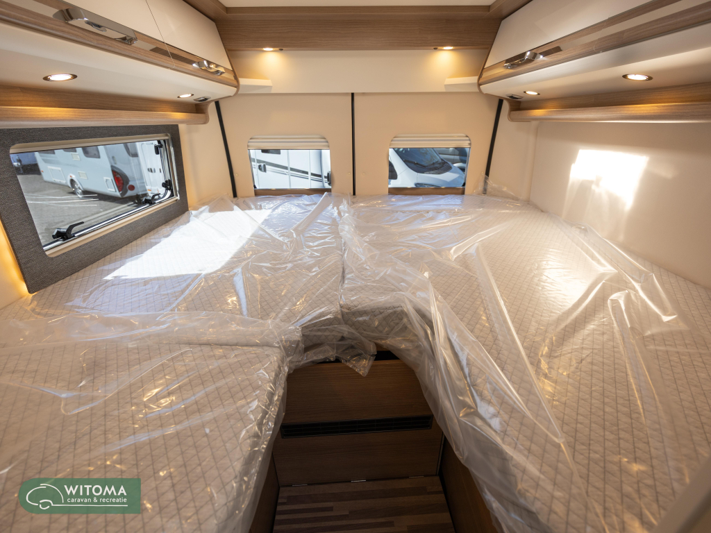 (Hemelbekleding met isolerende microvezelbekleding, Verlaagd plafond woonruimte met indirecte led-sfeerverlichting Upgrade keuken, Hoogwaardige koudschuimmatras in achterbed, Truma CP Plus digitaal bedieningspaneel Bevestigingssysteem bagageruimte, Afvalwatertank in behuizing ingebouwd en geïsoleerd)