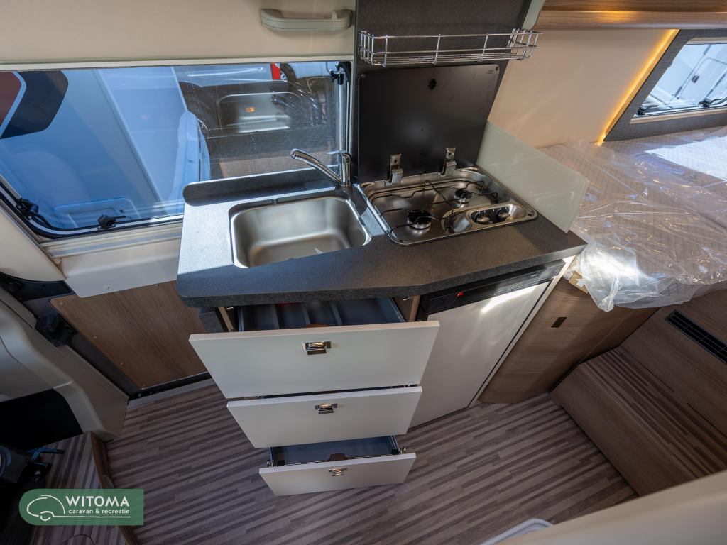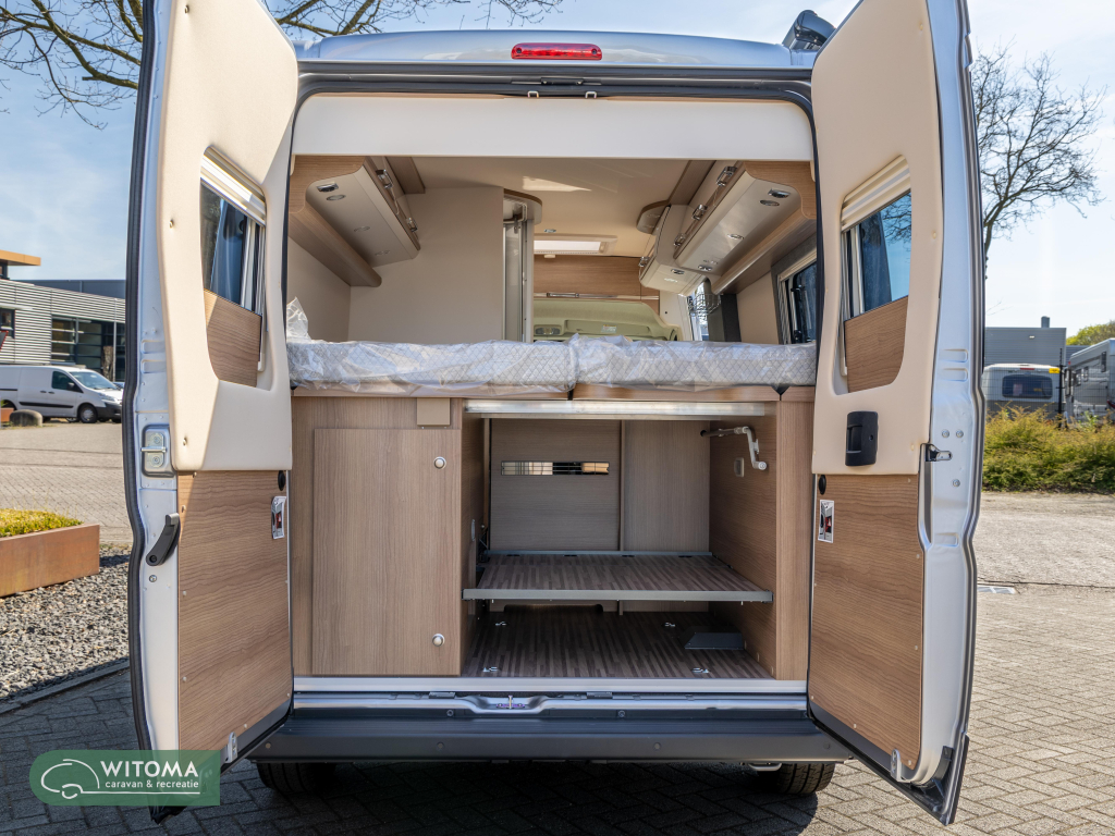 (Parkeerhulp met sensoren achterin, Brandstoftank 90 liter, Laadbooster, Vouwverduistering cabine, Koplamprand in het zwart afgewerkt, Radiovoorbereiding met dakantenne en DAB+, luidsprekers (4x), Bijrijdersstoel in hoogte verstelbaar, Pilootstoelen bekleed met woonkamerstof incl. gestoffeerde armleuningen, Hordeur, Elektr. Bed. buitenspiegels)