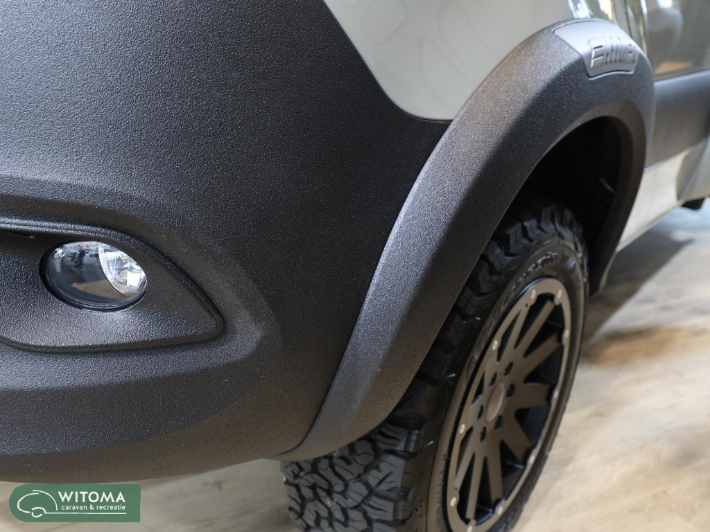 De Crosstrail is uitgevoerd in de populaire kleur Steingrau pastellak, bekend van de Hymer Venture en Grand Canyon S 4x4. Voor extra robuustheid zijn de voorbumper en spatbordranden in Raptor-lak gespoten.