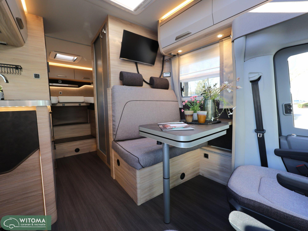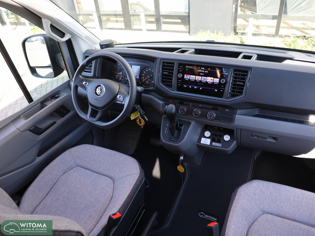 De krachtige 177 pk automaat op Volkswagen Crafter basis zorgt voor comfortabel en ontspannen rijden. Binnen ervaar je direct het gemak van een slimme indeling, een ruime koelkast en fijne extra’s zoals navigatie, satelliet en een tweede tv-aansluiting.
