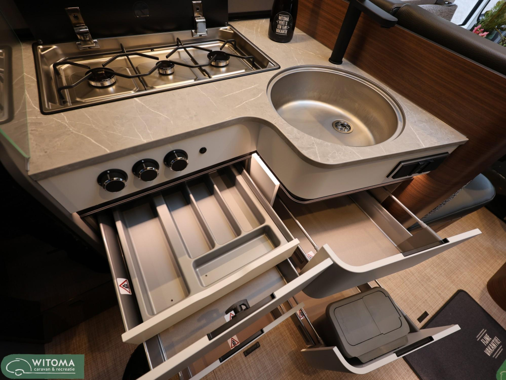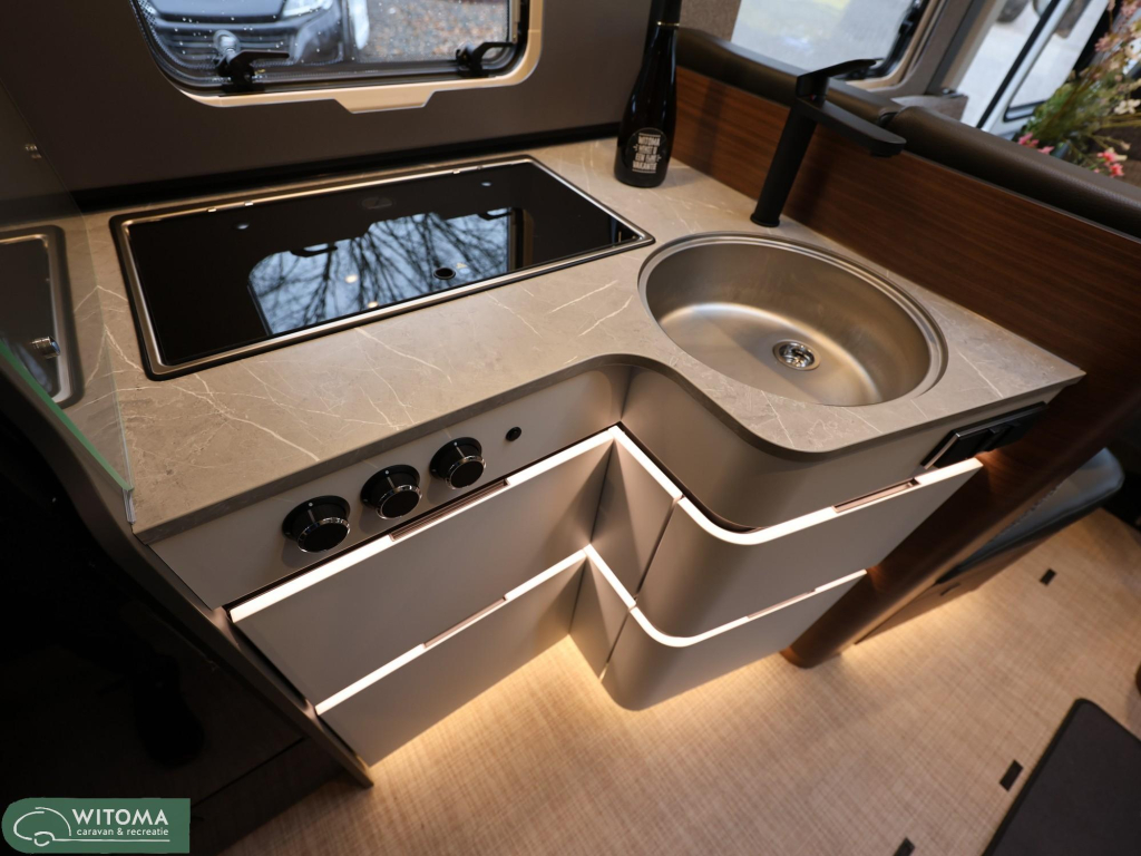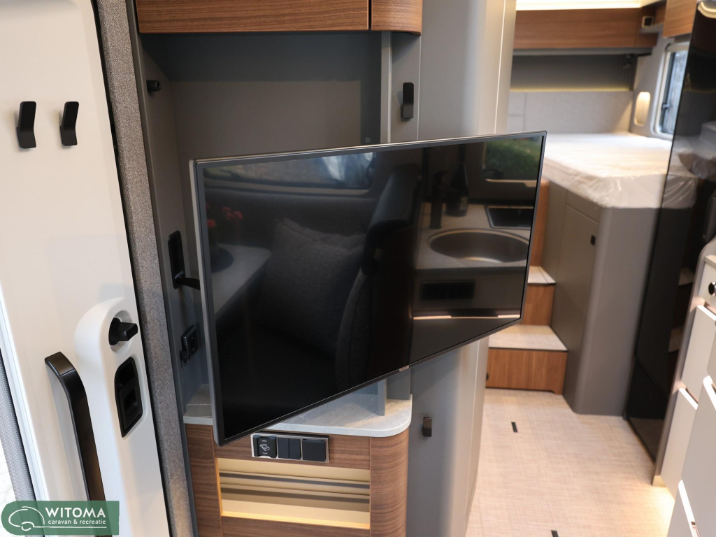Binnen geniet je van een warme, hoogwaardige afwerking met onder andere de stijlvolle Tenerife leder/stof bekleding, een slimme indeling met ruime bedden en een gezellige zithoek. Dankzij het Premium- en Wooncomfortpakket, de Smart Battery System 2.0 en de 32” smart TV ben je onderweg van alle gemakken voorzien — of je nu een weekend weggaat of langere reizen maakt.