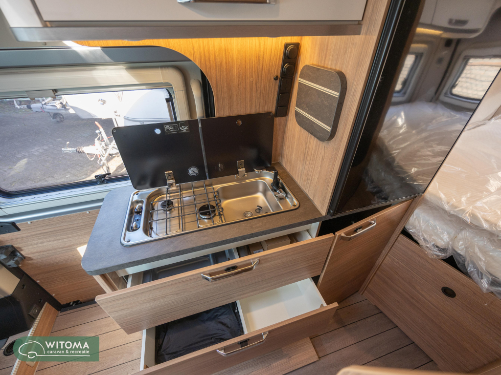 Op slechts 5m99 lengte enorm veel ruimte aan boord. Mede dankzij het dwarsbed achterin krijgt u voorin en bij het keukenblok meer ruimte. De afwerking is zoals u het van een Weinsberg mag verwachten (komt natuurlijk uit de Knaus stal). Kom hem zelf ontdekken en laat u verrassen!