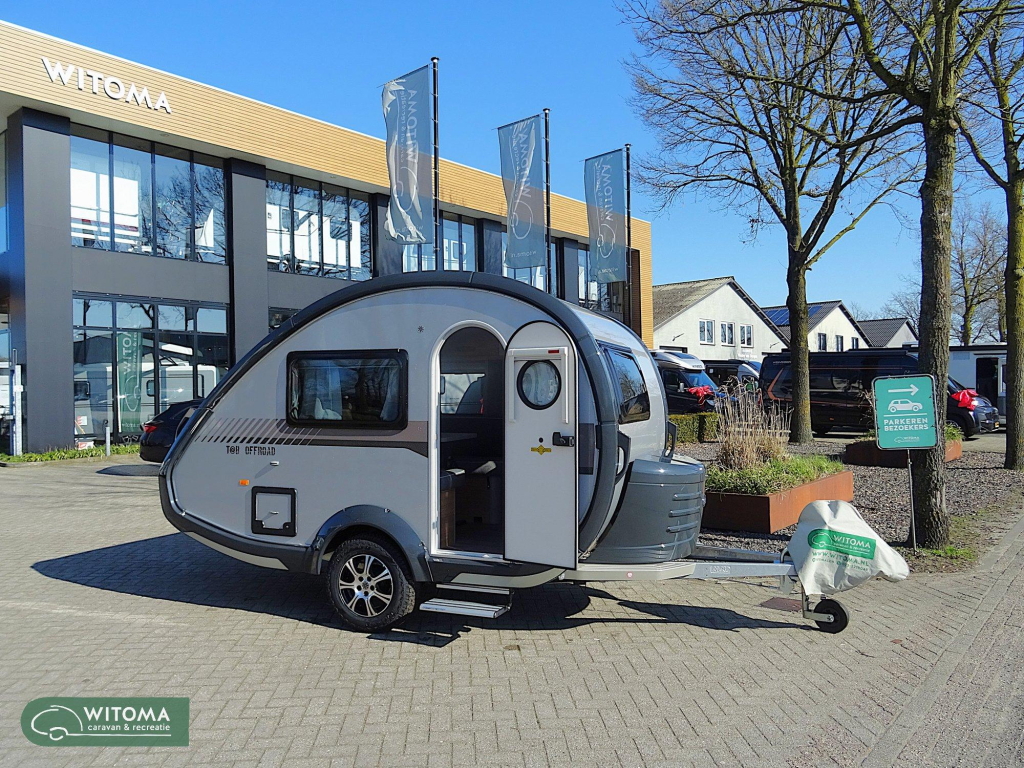 Deze stoere eigentijdse caravan staat nu bij ons in de showroom. Compact van formaat, groots in zijn daden! Standaard is deze caravan uitgevoerd mer een 1.00kg-as, licht metalen velgen en een handbediend opstapje.