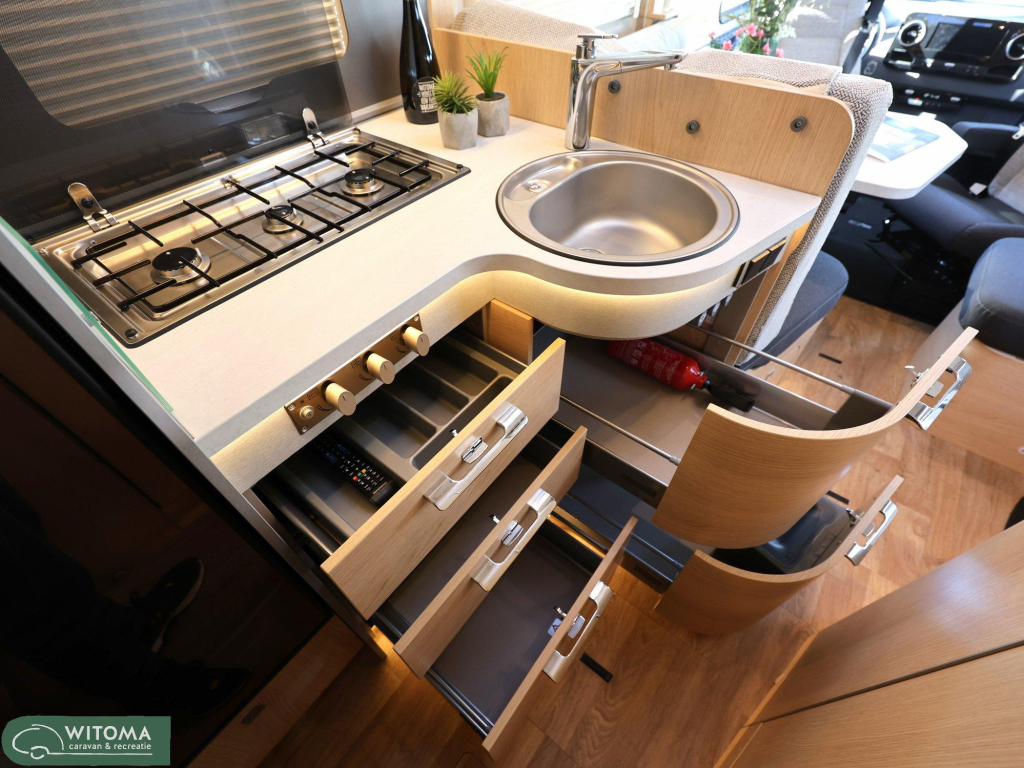 Gebouwd op het comfortabele Mercedes-Benz met de krachtige 170 pk motor, rijdt deze camper net zo prettig als een luxe auto. Binnen geniet je van een ruim en stijlvol interieur met een royaal 2-persoons hefbed, grote koelkast, 32” televisie met satellietschotel, en een slimme dubbele (meeverwarmde) bodem die zorgt voor extra comfort in alle seizoenen.