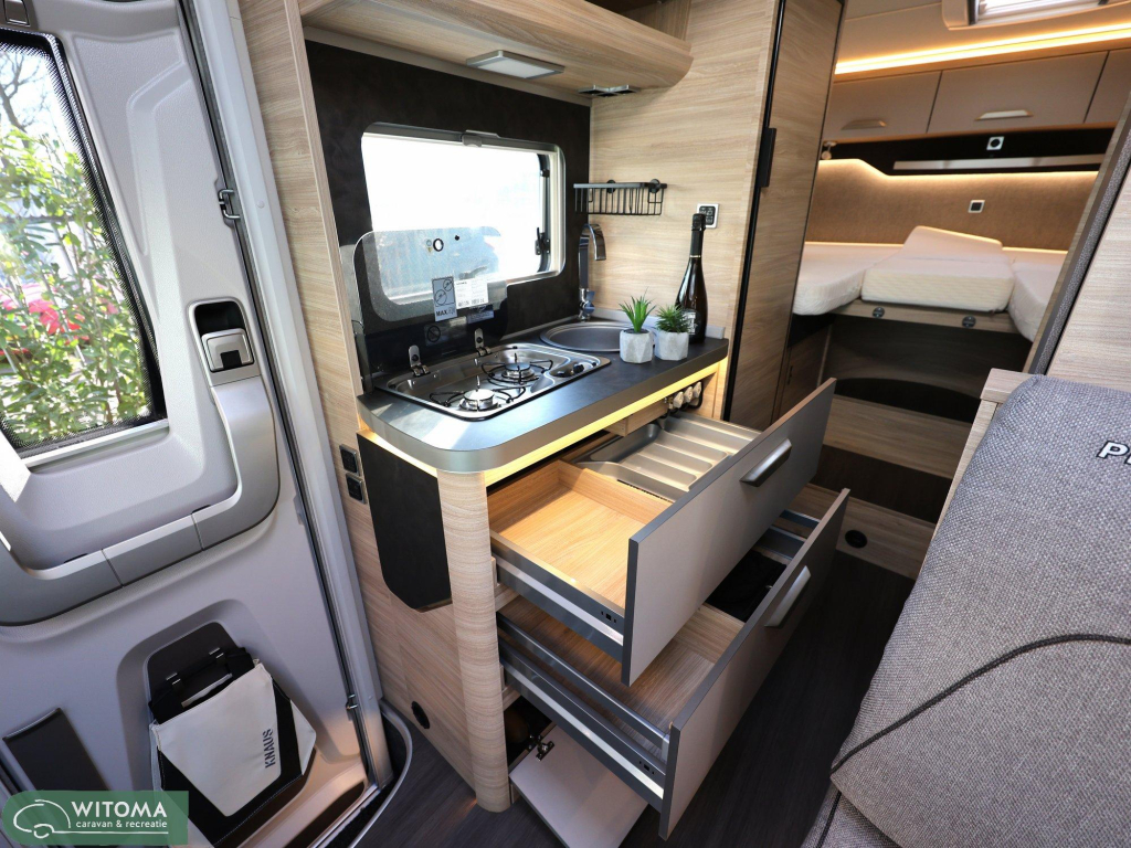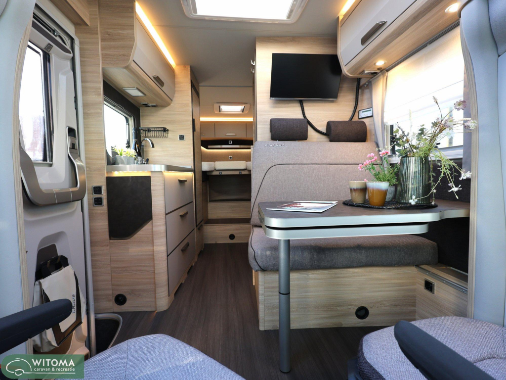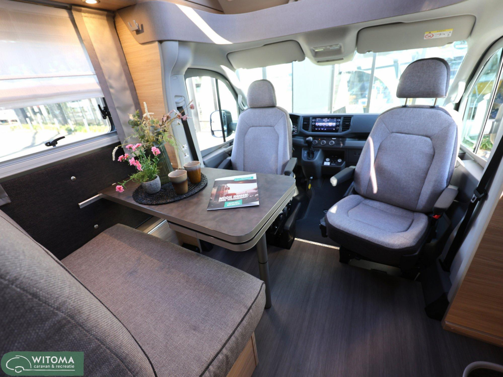 De krachtige 177 pk automaat op Volkswagen Crafter basis zorgt voor comfortabel en ontspannen rijden. Binnen ervaar je direct het gemak van een slimme indeling, een ruime koelkast en fijne extra’s zoals navigatie, satelliet en een tweede tv-aansluiting.