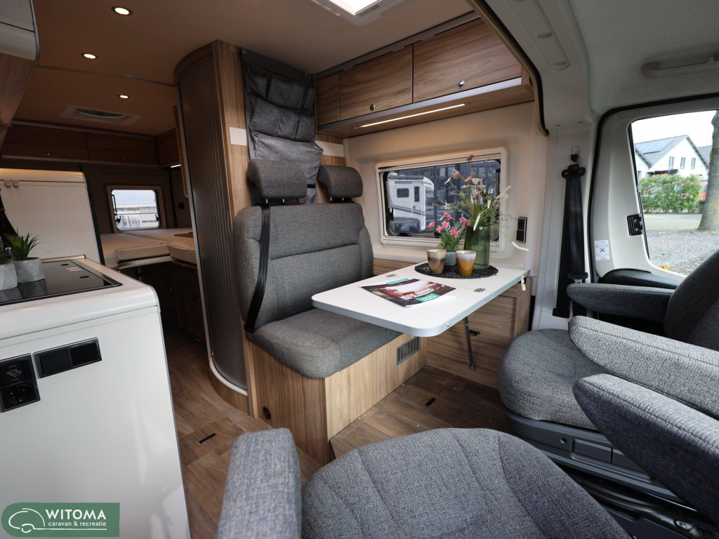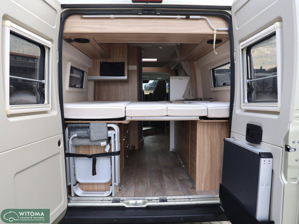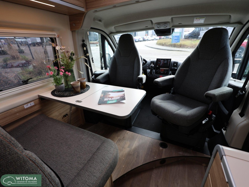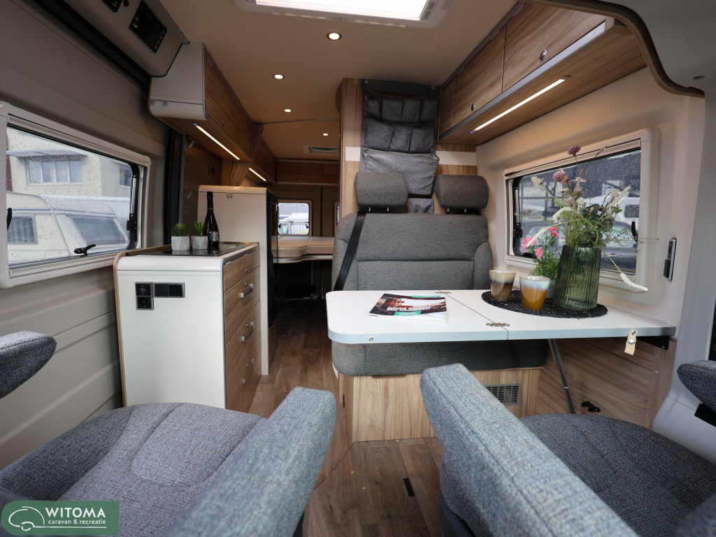 Binnen ervaar je direct het doordachte Hymer-design: praktisch, sfeervol en van alle gemakken voorzien. Denk aan een moderne navigatie met touchscreen, achteruitrijcamera, automatische airco en een ruime uitrusting die het reizen net dat beetje luxer maakt. Buiten geniet je van de royale luifel en de vrijheid om te gaan en staan waar je wilt.