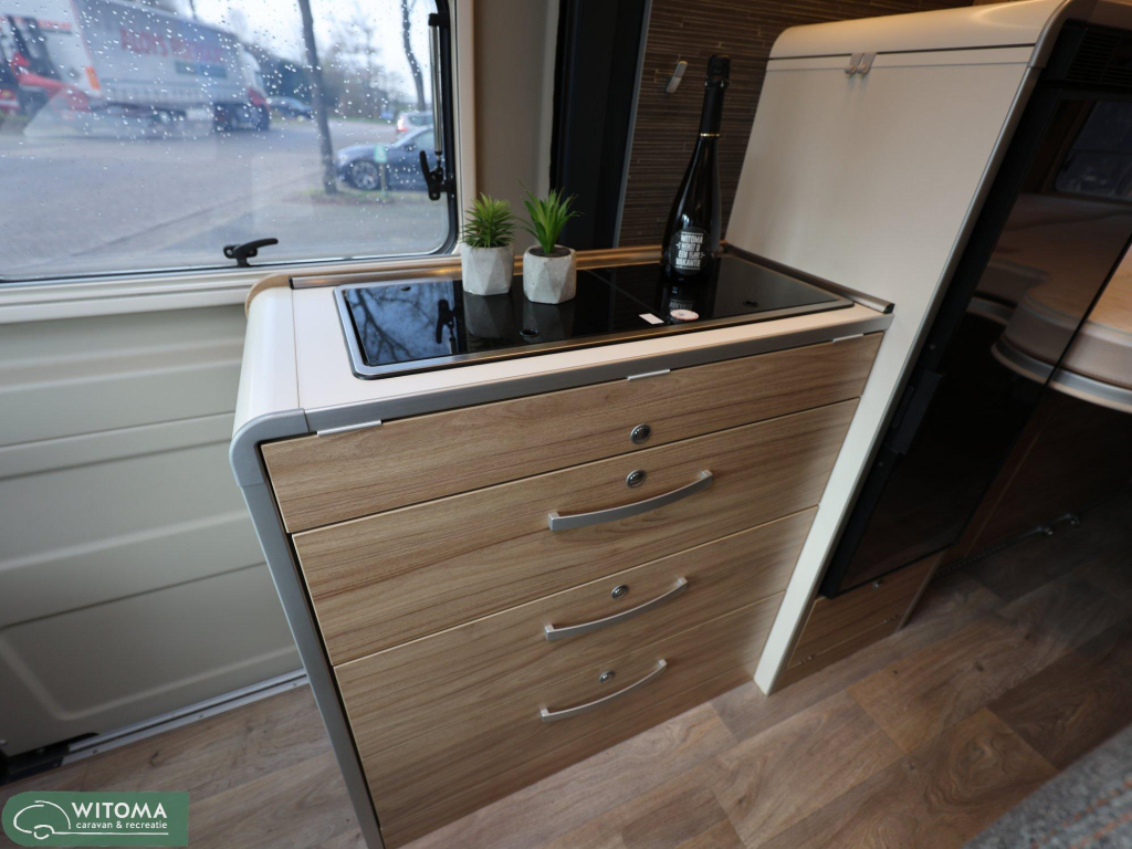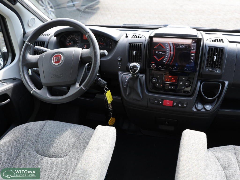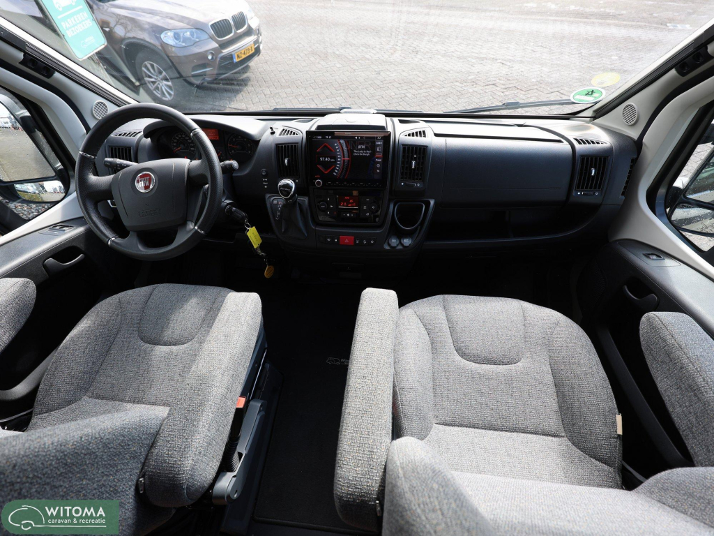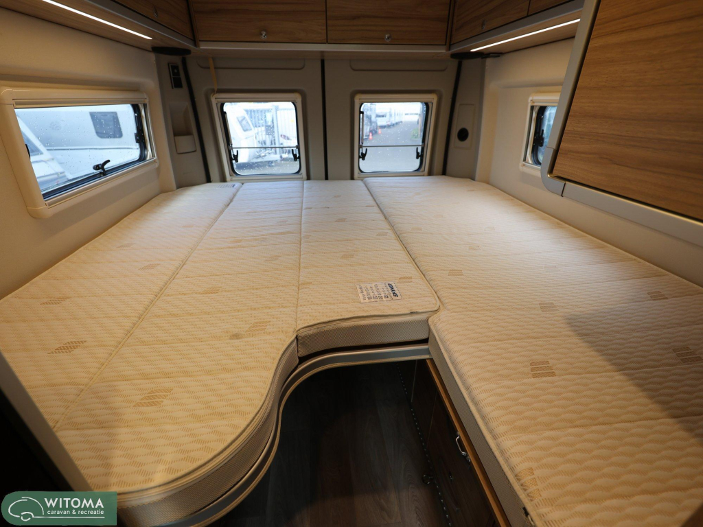 Binnen ervaar je direct het doordachte Hymer-design: praktisch, sfeervol en van alle gemakken voorzien. Denk aan een moderne navigatie met touchscreen, achteruitrijcamera, automatische airco en een ruime uitrusting die het reizen net dat beetje luxer maakt. Buiten geniet je van de royale luifel en de vrijheid om te gaan en staan waar je wilt.