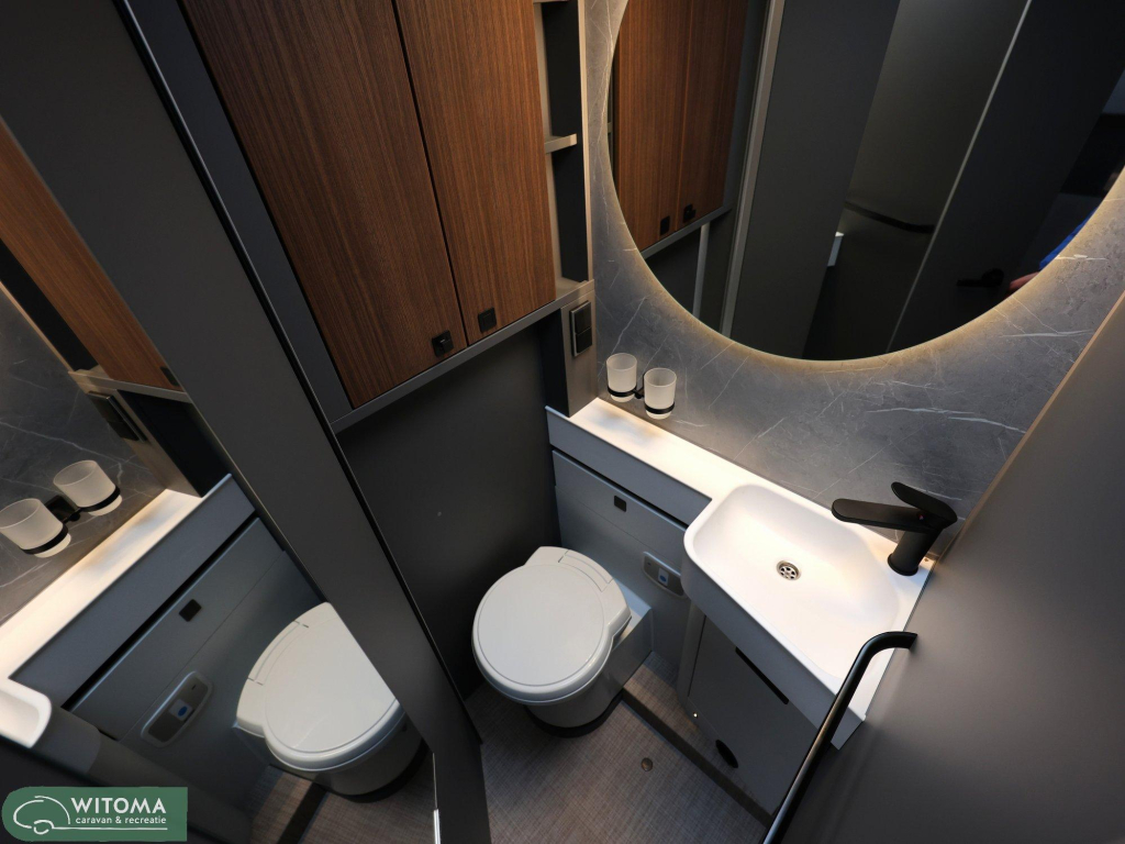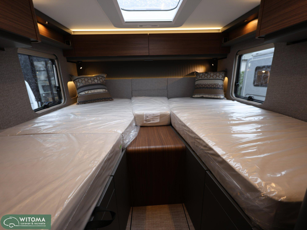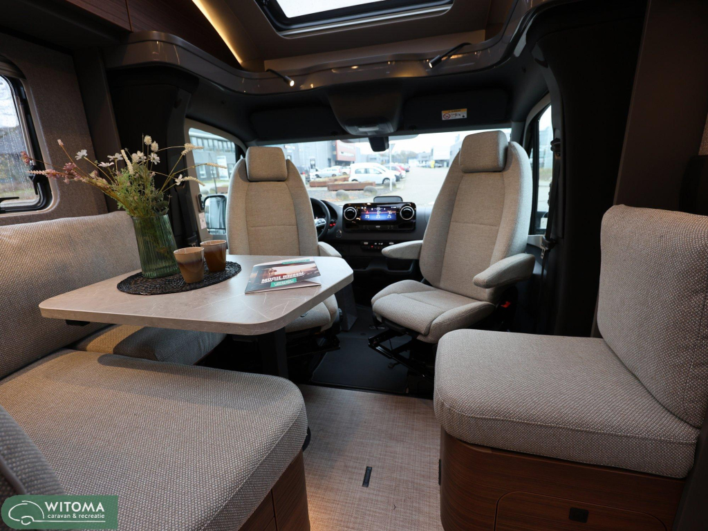 Binnen ervaar je direct het gevoel van thuis: een sfeervolle L-zitgroep, slimme opbergruimte en hoogwaardige afwerking zorgen voor rust en gemak onderweg. Dankzij het Premium- en wooncomfortpakket is werkelijk aan alles gedacht – van navigatie en airconditioning tot een Smart TV en ambient verlichting.